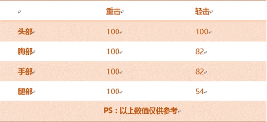 根据上述信息,我们可以看出:重击条件下,只要被焕.蝴蝶刀命中则必然淘汰,没有回旋余地。反之,轻击除头部可秒杀外其他皆需二次补刀。