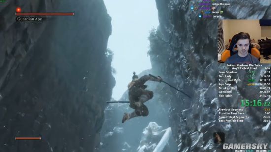 国外大神Distortion2仍然还在《只狼:影逝二度》的速通路上继续狂飙,最新纪录已经达到了24分37秒,相比此前的24分55秒又提升了接近20秒,而且还有望继续提升。
