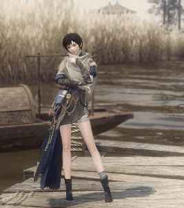 这套时装以粗麻布制成,柔软而坚韧,领口、衣摆、袖子等处的花色都不同,显然不是出自同一匹布,图案相撞,更显自由不羁。除了舒适之外,这套时装还格外注重实用性,腰间有荷叶小包,有麻绳系铃,方便行车赶路所用;特色十足的小辫子、露脚趾的鞋子设计也处处透着一股混江湖独有的古灵精怪之感,俏皮不失可爱。喜欢的同门可以了解一下哦。
