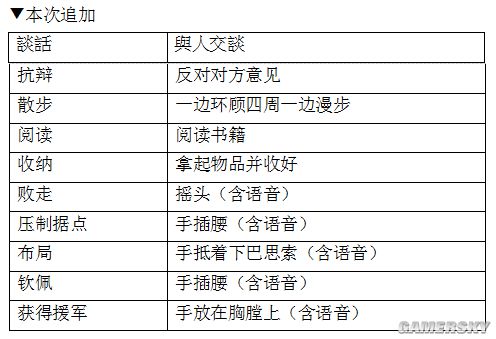 全新追加 10 种情感表现,可向古钱收藏家交换。情感功能分为动作以及动作加语音两种。 在收刀状态时按下 R1 键+◯・☓・△・□,就能让角色表达情感。