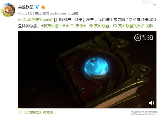 今日,@英雄联盟官方微博发布了一段新英雄的预告片,并称新英雄“门扉魔典|悠米”即将登陆测试服,让我们一起来看看吧。