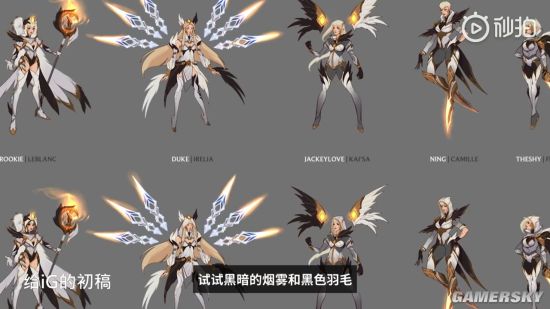 今日,@英雄联盟官微公开iG冠军皮肤的制作纪录片,设计师表示在设计这套冠军皮肤的期间,尽量满足选手们的建议和反馈,并给所有的角色在所有能加的地方,都加上了翅膀!