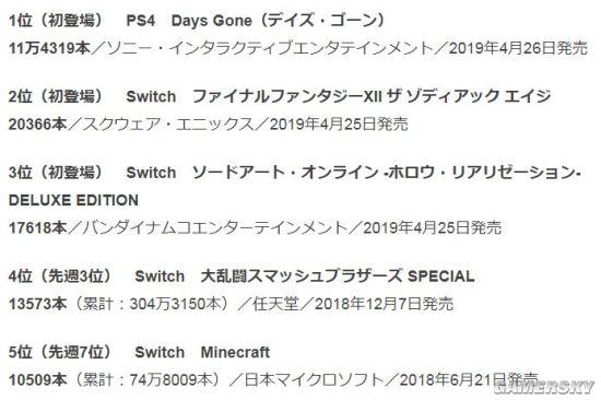Fami通最近公布了4月22日至4月28日期间的游戏销量榜,其中《往日不再》以首周卖出了11.4万份的成绩勇夺第一,远超同样也是刚刚发售的NS游戏《最终幻想12》和《刀剑神域:虚空幻界》,甚至比第二名到第十名加起来的销量还要高。